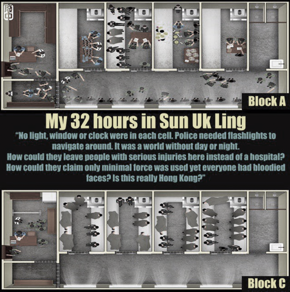 Evil (Pseudonym) aged 27, was one of the arrestees, she described the terrifying 32 hours of detention at Sun Uk Ling Holding Centre.